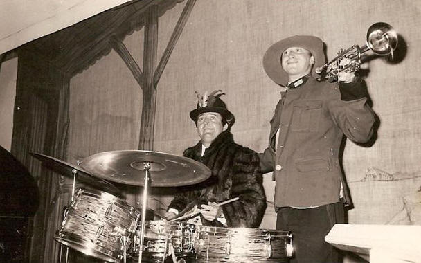This sense of humour served him well in his choice of career. He received his first drum kit at the age of 9, playing his first professional gig at 13. Abandoning his apprenticeship as a painter in the dockyard, he pursued a career in the music business, touring major halls and theatres throughout Britain, including concerts at the Albert hall with Cliff Richard, Joe Brown and the Beatles to name but a few. He toured with the major shipping lines, and played at top cabaret and variety venues. His stories of these times were hilarious and unfortunately, too crude to mention here. Quite simply, he made the drum chair his own.